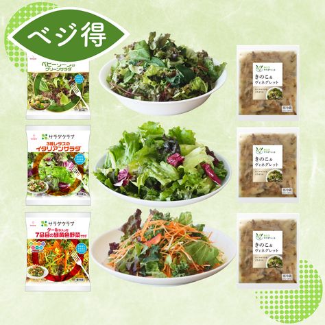 NEW冷蔵品パッケージサラダ3種&サラダソース きのこ&ヴィネグレット3袋セット2,013円(税込)3食分100円OFF -