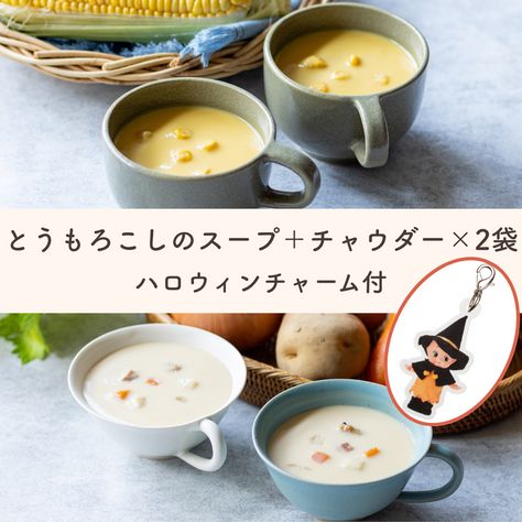 NEW数量限定【SALE】【まとめ買いでお得】Qummy とうもろこしのスープ2袋+ Qummy あさりと野菜のチャウダー2袋 ハロウィンチャーム付き≪Qummy3周年≫1,980円(税込)71円OFF